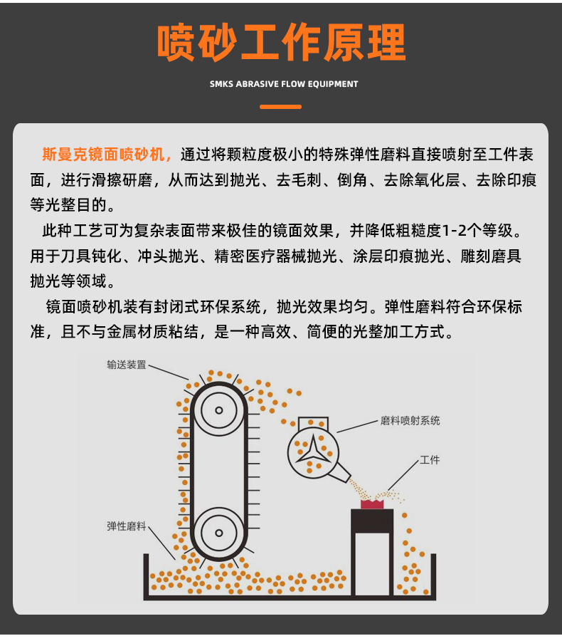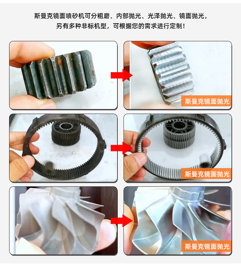 原理:高速喷射滑擦研磨,从而达到抛光效果。